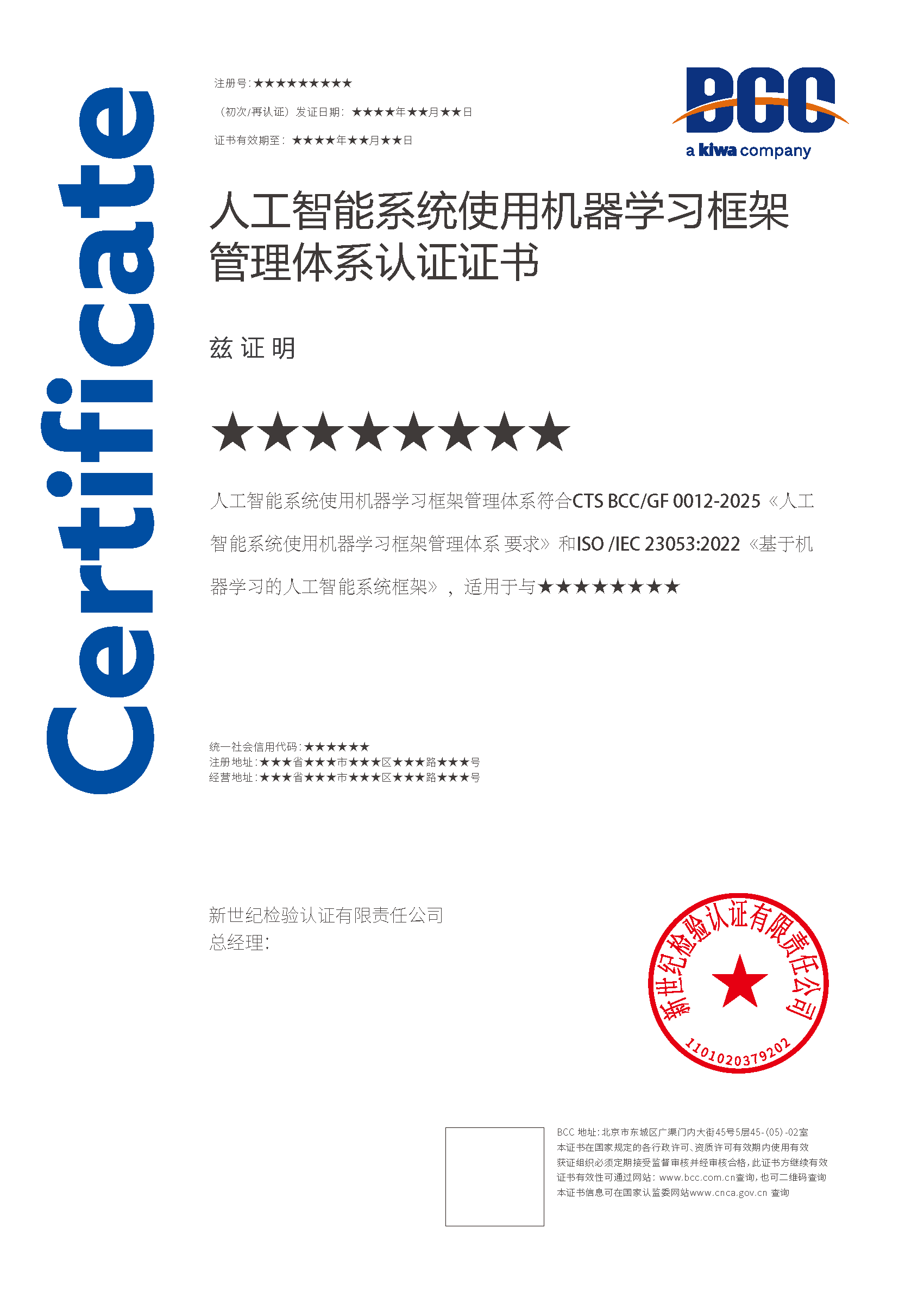 人工智能系統使用機器學習框架管理體系認證適用于所有類型和規模的組織,包括正在實施或使用人工智能系統的公私企業、政府機構以及非營利性組織。